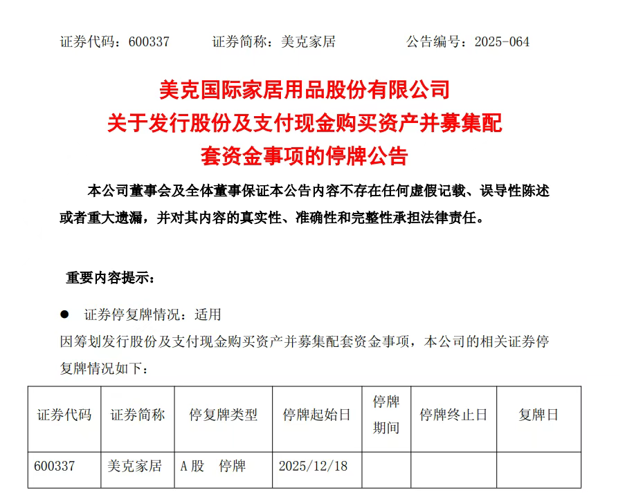 除了设立子公司,收购也是企业实现快速跨界的重要途径。美克家居近日发布停牌公告,筹划收购主营高速铜缆的深圳万德溙光电科技有限公司控制权,此举意味着公司正试图从家居领域直接切入服务于AI服务器的算力硬件赛道。